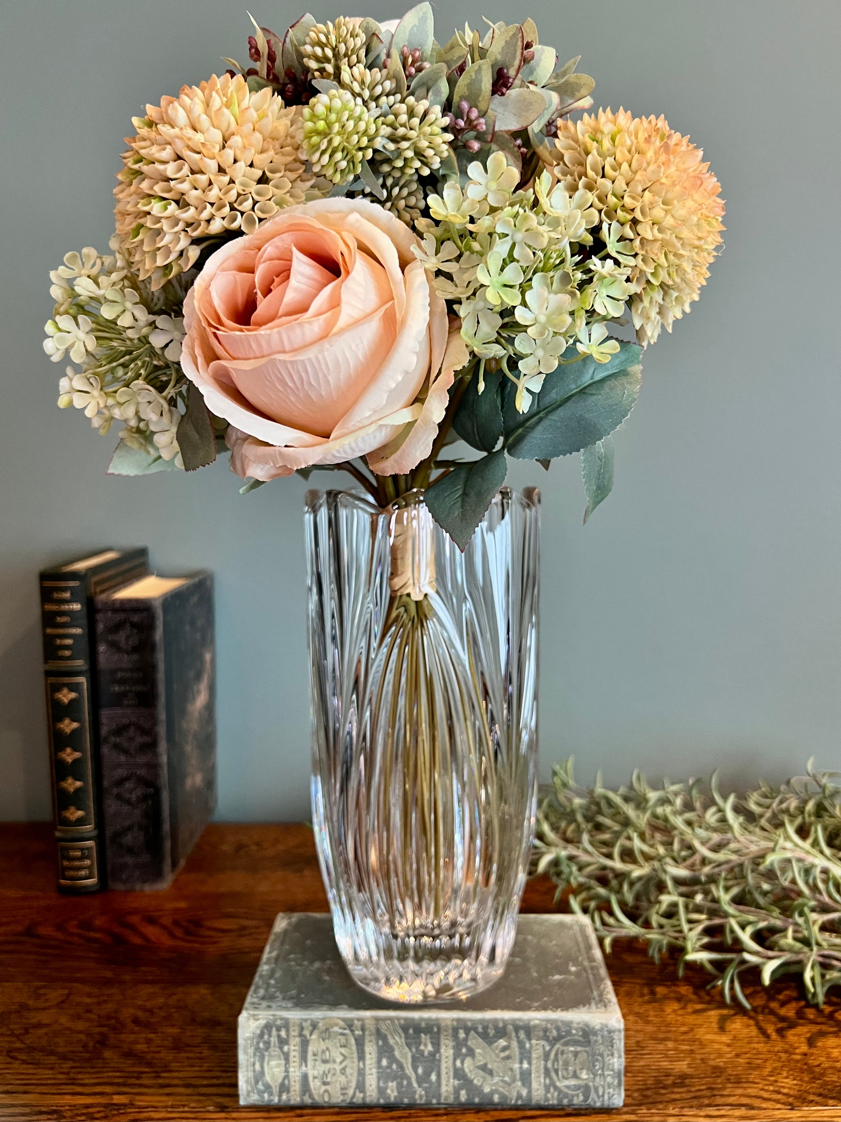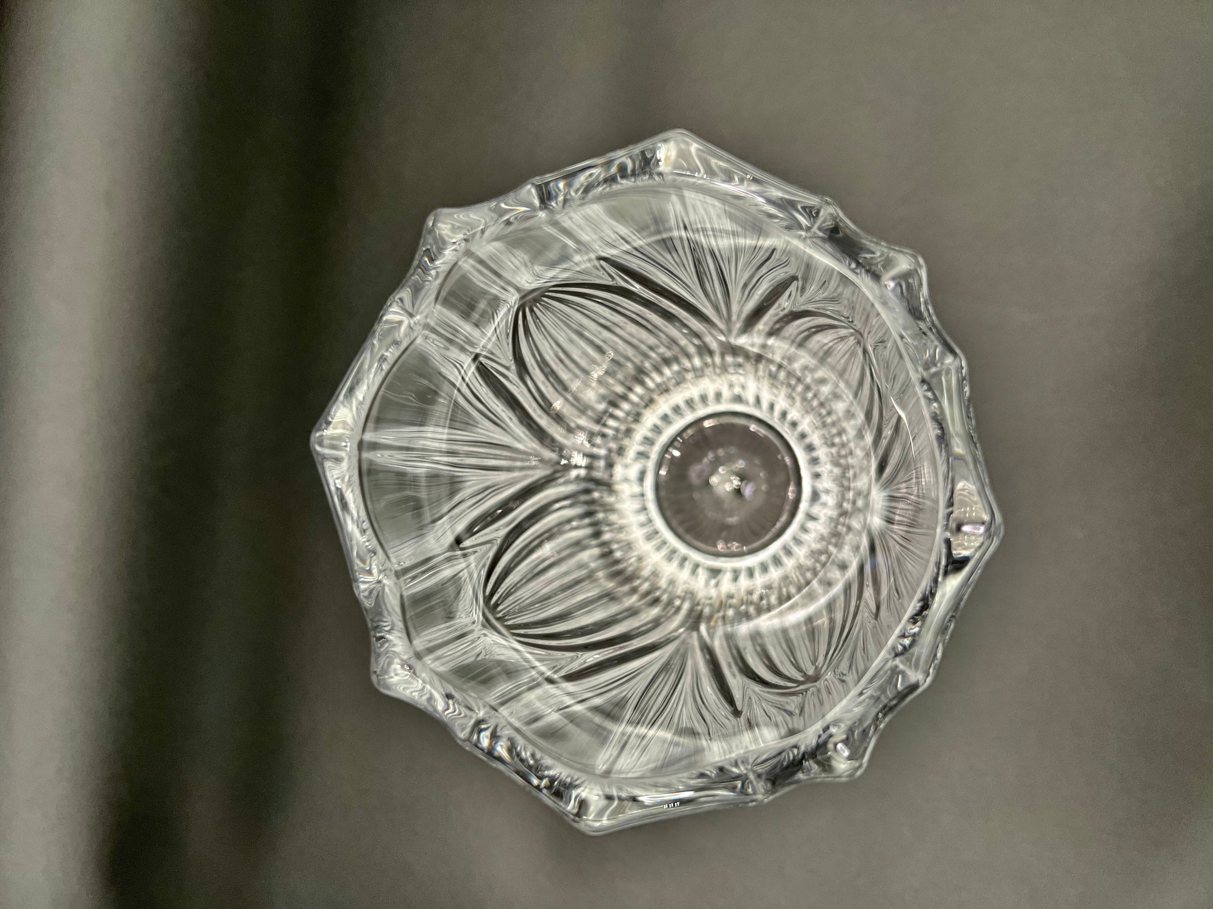 Its weight and brilliance make it as striking empty as it is filled with flowers, a sculptural form meant to anchor a table or mantel. With each ripple of cut glass, the vase reflects both artistry and endurance — a piece meant not only to hold beauty, but to be beauty itself.