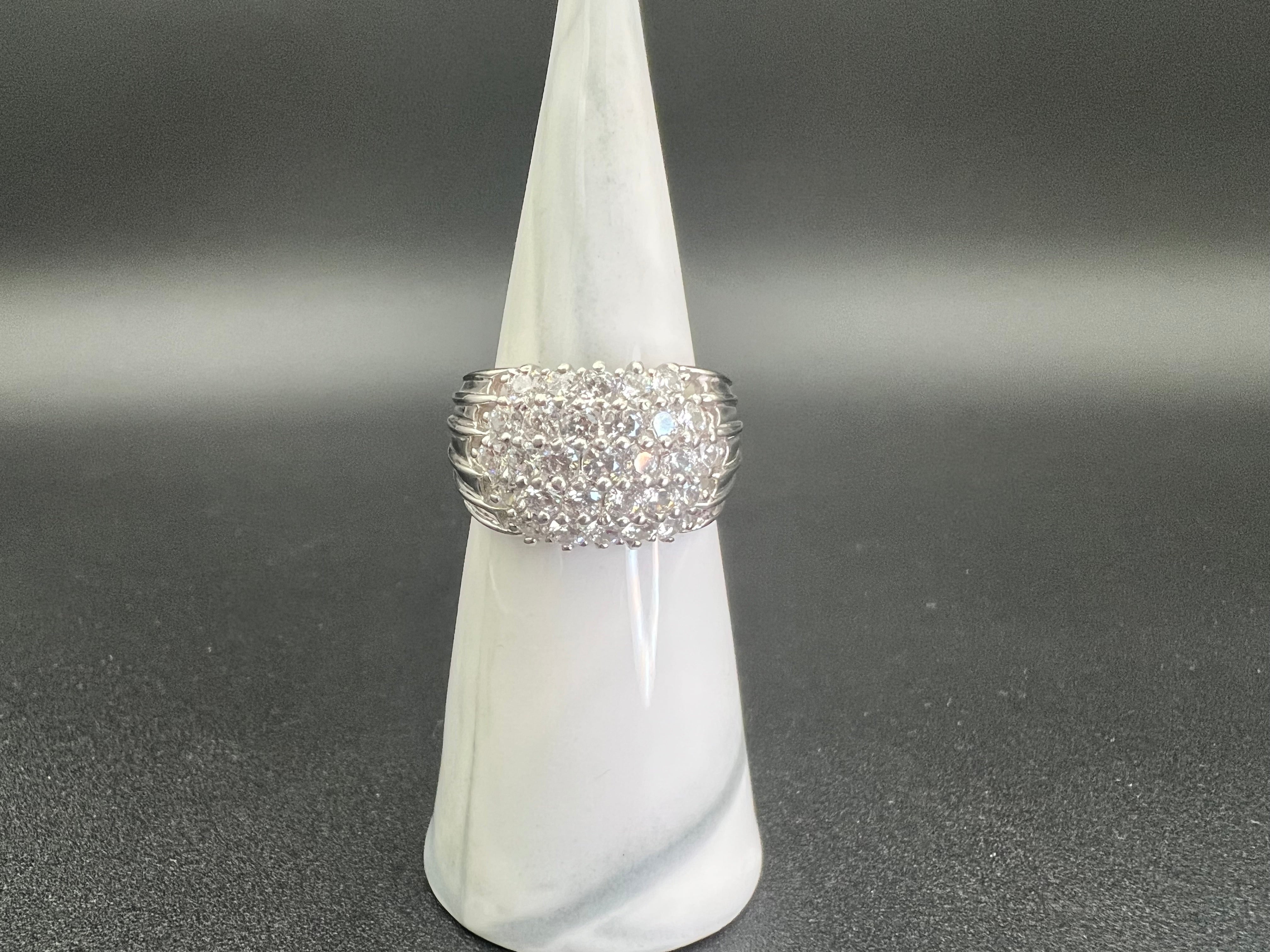 Simulated Diamond & Sterling Silver Ring, Size 7.5